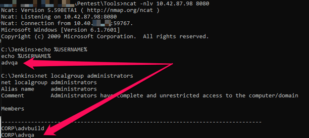 The first thing I investigate for authentication issues is the Script Console page – located at https://URL/script. This page allows you to run Groovy script code that can run arbitrary operating system (OS) commands (Windows/Linux). The code will execute under the same permissions context of the Jenkins server, which from my experience has been a high-privileged user.