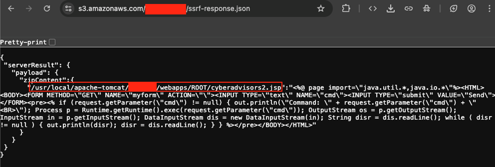 Figure 1 – JSON file on the S3 bucket to write the JSP shell